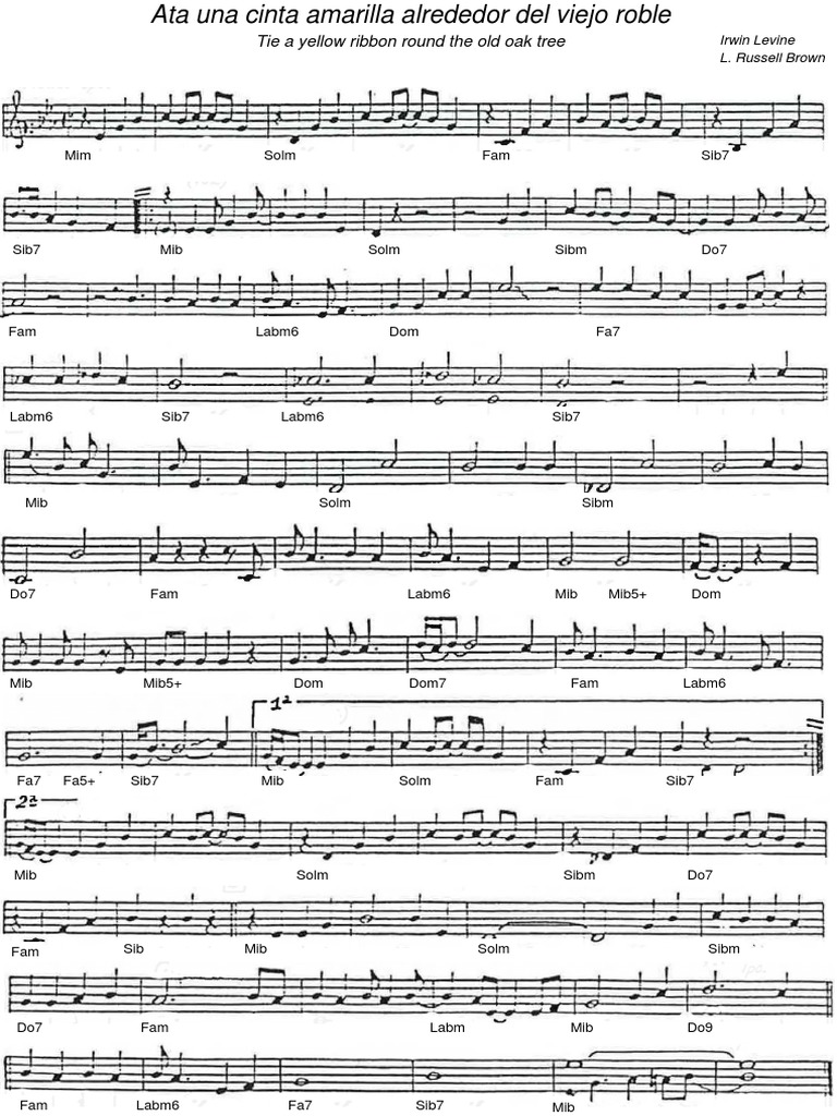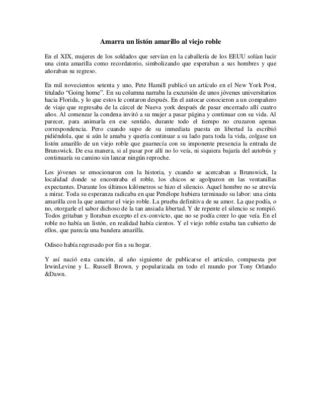 Amarra un listón amarillo alrededor del viejo roble. Voy regresando un mi ciudad despues de tanto tiempo. LETRA ATA UNA CINTA AMARILLA AL VIEJO ROBLE.